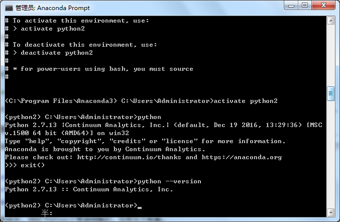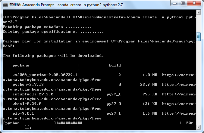对我帮助很大的一点是,我的 Python 2 和 Python 3 具有独立的环境。我使用了 conda create -n py2 python=2 和 conda create -n py3 python=3 创建两个独立的环境,即 py2 和 py3。现在,我的每个 Python 版本都有一个通用环境。在所有这些环境中,我都安装了大多数标准的数据科学包(numpy、scipy、pandas 等)。