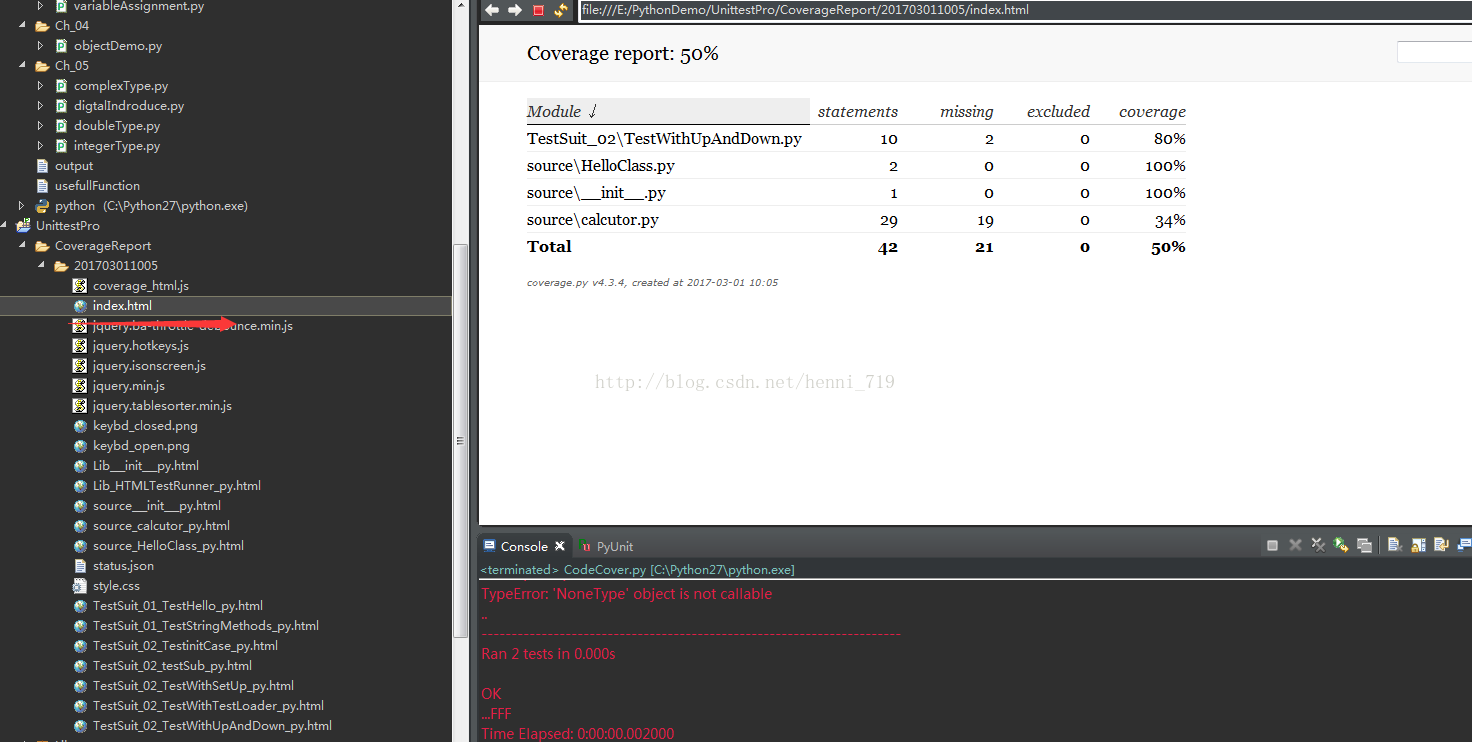 就是在源代码的基础上加了一个CodeCover.py文件,执行该文件会在目录CoverageReport生成相应的覆盖报告。如下是CodeCover.py的源码: