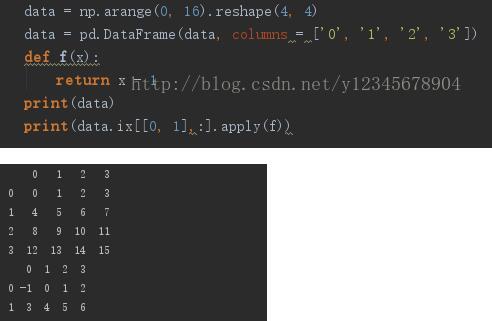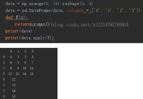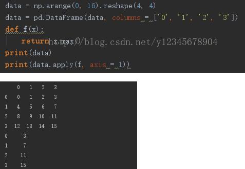 apply函数可以对DataFrame对象进行操作,既可以作用于一行或者一列的元素,也可以作用于单个元素。