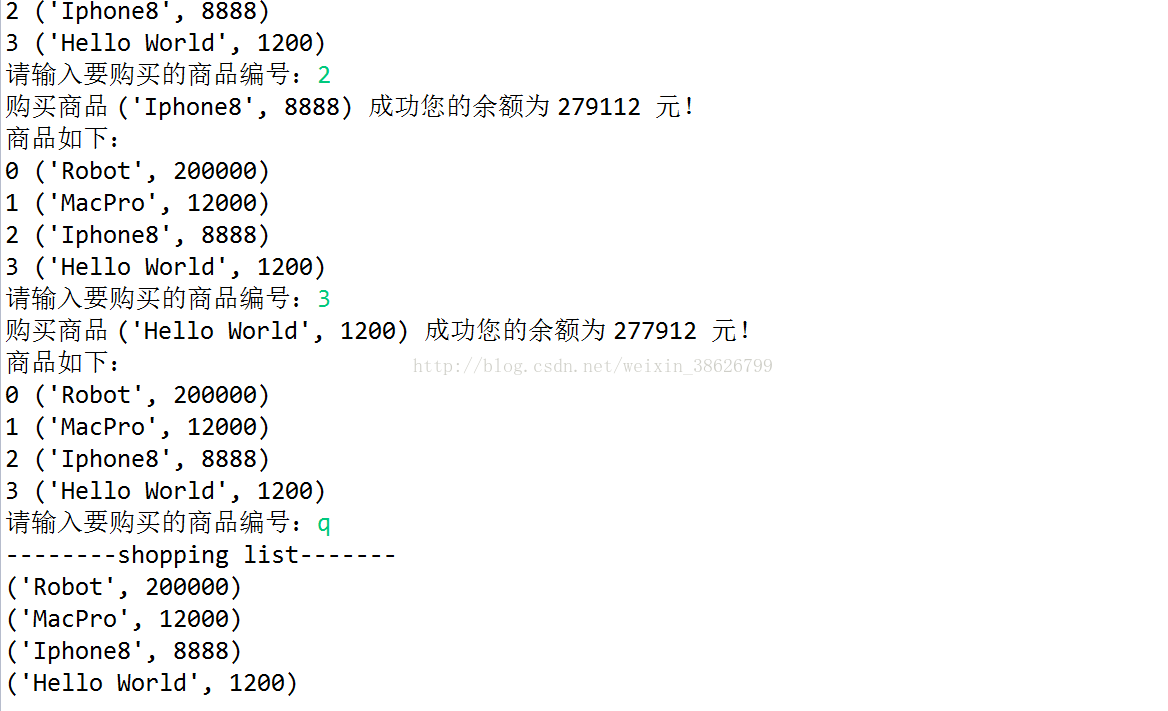 print("购买商品",p_item,"成功您的余额为",user_salary,"元!" )