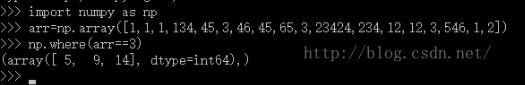 在numpy的ndarray类型中,似乎没有直接返回特定索引的方法,我只找到了where函数,但是where函数对于寻找某个特定值对应的索引很有用,对于返回一定区间内值的索引不是很有效,至少我没有弄明白应该如何操作尴尬。下面先说一下where函数的用法吧。