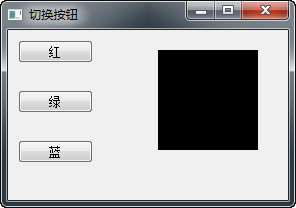 在我们的例子中,我们创建了三个切换按钮和一个QWidget。我们设置QWidget的背景色为黑色。切换按钮将切换颜色值的红,绿和蓝色部分。背景颜色将取决于切换。
