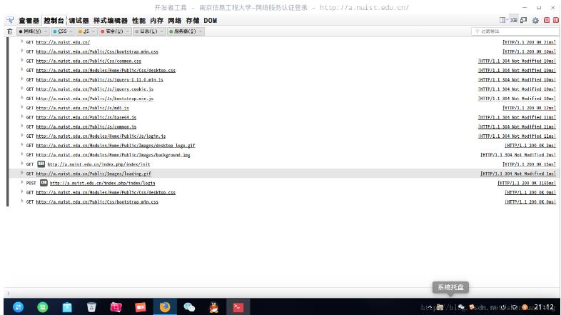 1) 先打开到登录界面,然后在按f12打开firedebug插件,此时debug无任何记录行为,然后点击刷新按钮,再点击登录按钮,再次调出debug点击控制台选项卡,这时会发现很多get方法加上最后由登录产生的POST方法,如图所示