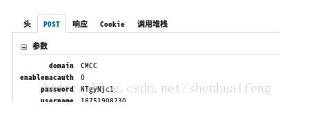 3) 查看POST选项卡中的内容,其中的变量和参数都需要保存下来,这里面可以看到其中的password是被加过密的.如果只是登录自己的账号密码,那么程序到此可以结束.把其中的数据用自己抓到的数据替换使用下面代码即可登录校园网.