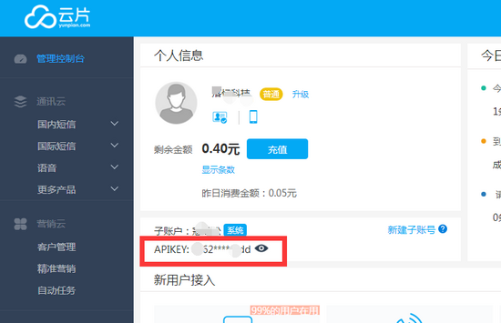 1.在云片网端: