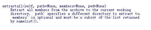编写暴力破解Zip文件要从学习zipfile库的使用方法入手,首先打开Python解释器,用help('zipfile')命令来了解这个库并重点看一下ZipFile类中的extractall()这个方法