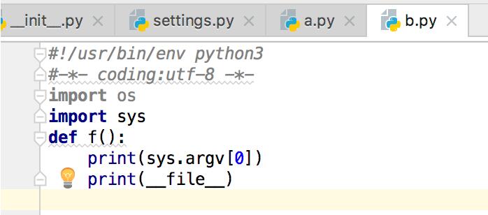 (3)sys.argv[0]和_ _ file _ _的差异:在主执行文件中时,两者没什么差异,不过要是在不同的文件下,就不同了,如a.py,b.py这两个文件
