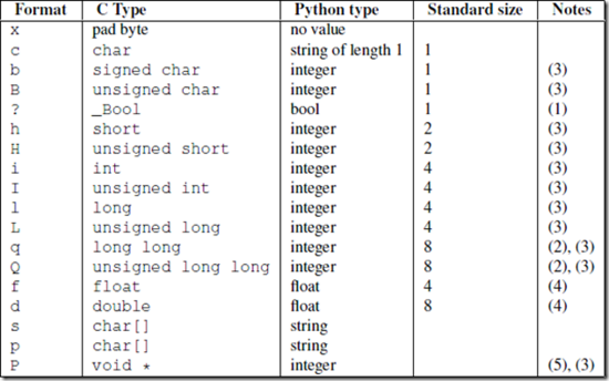struct提供用format specifier方式对数据进行打包和解包(Packing and Unpacking)。例如: