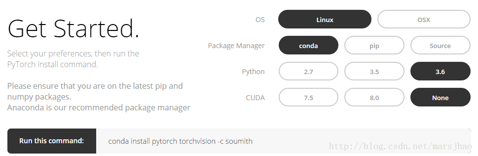 登录PyTorch官网,http://pytorch.org,可以看到以下界面: