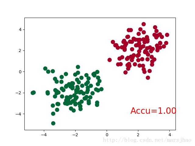 plt.text(1.5, -4, 'Accu=%.2f' % accuracy, fontdict={'size': 20, 'color': 'red'})