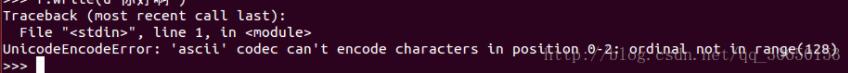write()方法会自动编码转换,默认使用ascii编码格式,而ascii不能处理中文,所以出现UnicodeEncodeError。