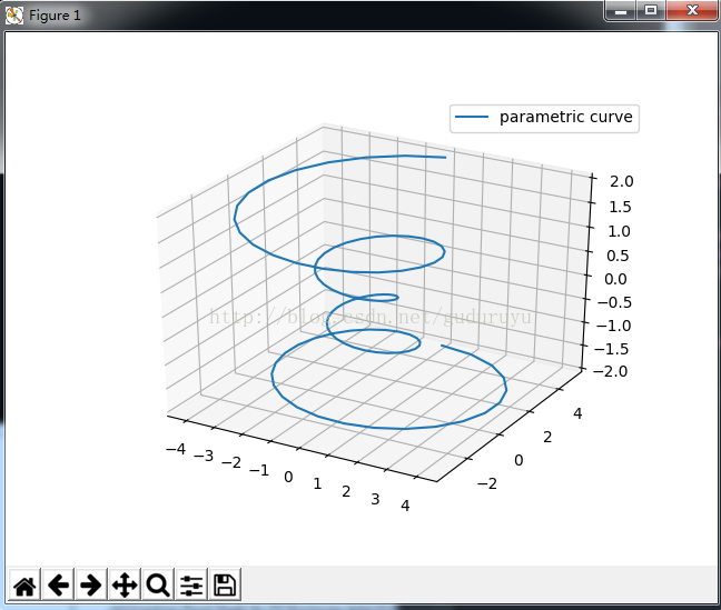import matplotlib as mpl from mpl_toolkits.mplot3d import Axes3D import numpy as np import matplotlib.pyplot as plt mpl.rcParams['legend.fontsize'] = 10 fig = plt.figure() ax = fig.gca(projection='3d') theta = np.linspace(-4 * np.pi, 4 * np.pi, 100) z = np.linspace(-2, 2, 100) r = z**2 + 1 x = r * np.sin(theta) y = r * np.cos(theta) ax.plot(x, y, z, label='parametric curve') ax.legend() plt.show()