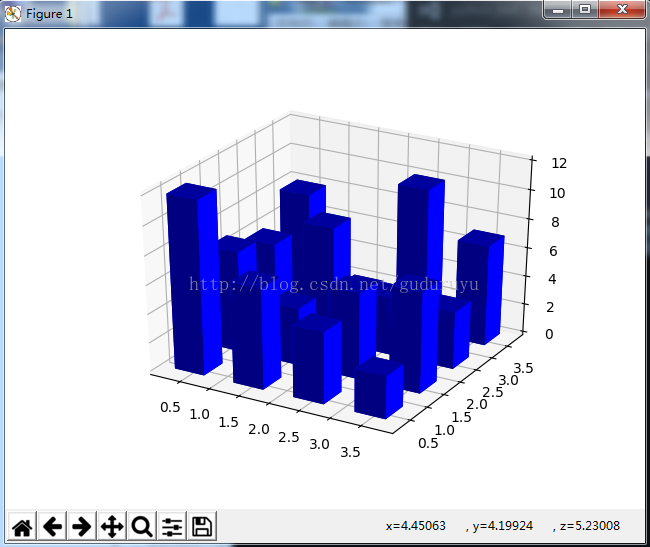 ax.bar3d(xpos, ypos, zpos, dx, dy, dz, color='b', zsort='average')