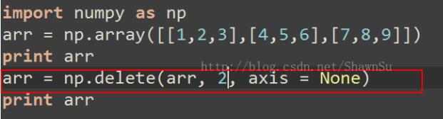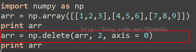 以上这篇numpy中的delete删除数组整行和整列的实例就是小编分享给大家的全部内容了,希望能给大家一个参考,也希望大家多多支持脚本之家。
