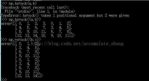 下面是用numpy中的函数进行数组的拼接。