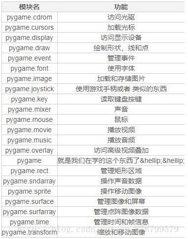 Pygame模块一览表: