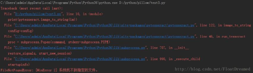 这里要说明的是安装Tesseract-OCR后,其不会被默认添加至环境变量path中,已导致如下报错:
