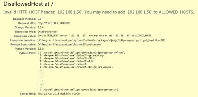 修改settings.py,将192.168.1.50添加到ALLOWED_HOSTS中