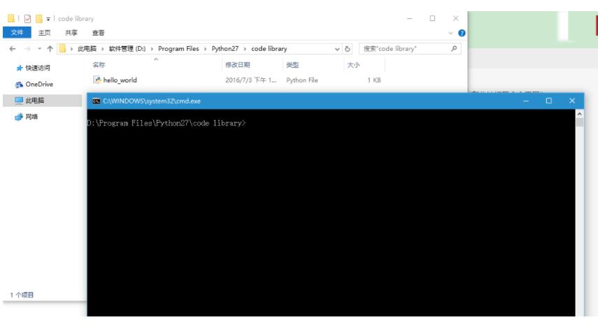 进入Python脚本所在的文件夹,shift+右击,选择“在此处打开命令窗口”,按TAB键切换文件,选择目标python脚本,当然直接输入也行。