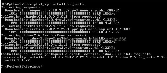 4. 接着再输入命令pip install requests 执行安装,等待他安装完成就可以了。