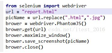 fromselenium importwebdriver #从selenium库导入webdirver brower=webdriver.PhantomJS() #使用webdirver.PhantomJS()方法新建一个phantomjs的对象,这里会使用到phantomjs.exe,环境变量path中找不到phantomjs.exe,则会报错 brower.get(url) #使用get()方法,打开指定页面。注意这里是phantomjs是无界面的,所以不会有任何页面显示 brower.maximize_window() #设置phantomjs浏览器全屏显示 brower.save_screenshot(picName) #使用save_screenshot将浏览器正文部分截图,即使正文本分无法一页显示完全,save_screenshot也可以完全截图 brower.close() #关闭phantomjs浏览器,不要忽略了这一步,否则你会在任务浏览器中发现许多phantomjs进程