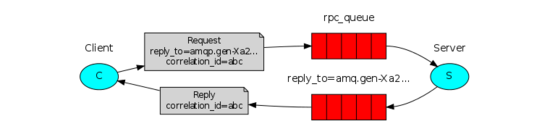 注意要点:1、c_client 发布消息到rabbitmq 需要携带 服务器返回的队列名称,及corr_id