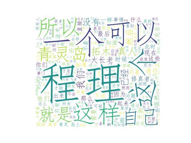 今天教大家用wrodcloud模块来生成词云,我读取了一篇小说并生成了词云,先看一下效果图: