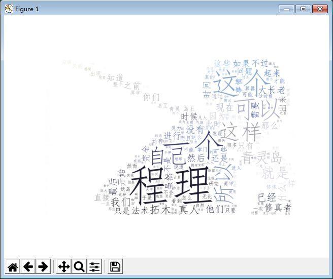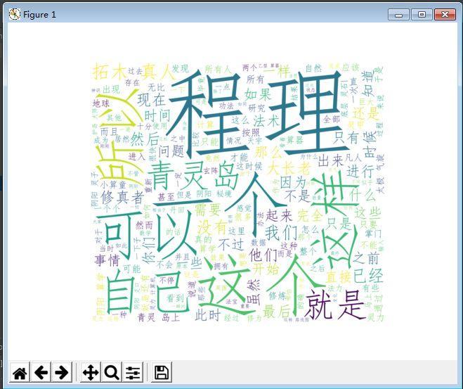 根据效果图分析的还是比较准确的,小说中的主人公就是“程理”,所以出现次数最多。图中有两种模式,一种是默认的模式,另一种是自己添加图片作为背景。下面我就带大家一起来学习怎样去生成词云!