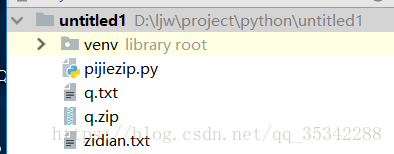 创建一个.py文件,在根目录然后在将我们的压缩文件放入同目录里面,项目结构目录