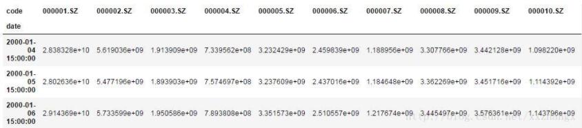 # a是DataFrame格式的数据集 a.index.name = 'date' a.columns.name = 'code'