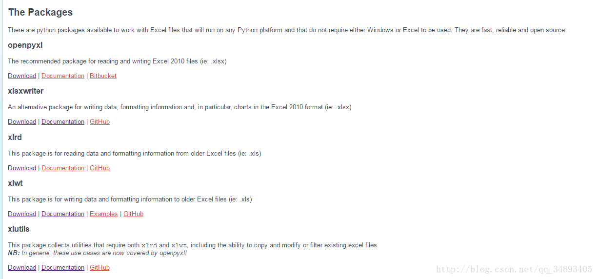 官网上最推荐的是openpyxl,其他包支持较老的excel版本。
