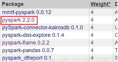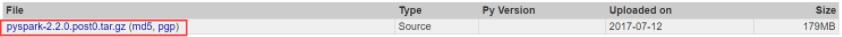 这里直接在右上角搜索pyspark-2.2.0.post0.tar.gz,得到搜索结果如下图,点击“pyspark 2.2.0”