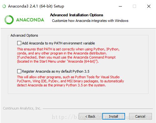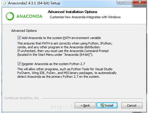 Register Anaconda as the system Python2.7这个选项是让其他IDE能够检测到python2.7并将设置为默认的Python 2.7。