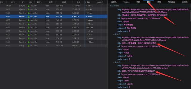这就是刚才浏览的新闻所在的json包,来看看具体数据是什么