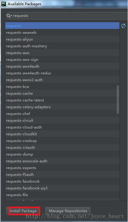 3、输入你想添加的包名,点击Install Package