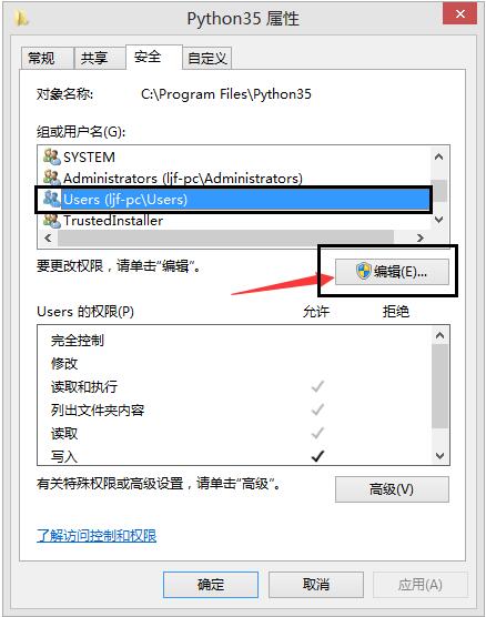 3 首先切换到 安全 这个大标题下面,选中当前登陆的用户,然后再点击编辑,编辑完以后不要忘记点击应用,