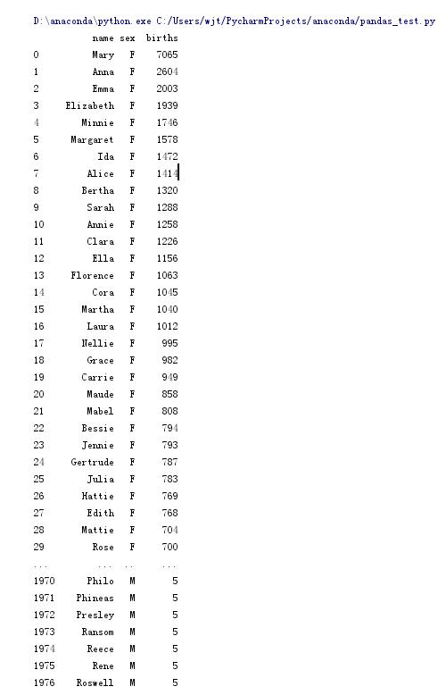 # 读取csv文件 3列取名为 name,sex,births,后面参数格式为names=