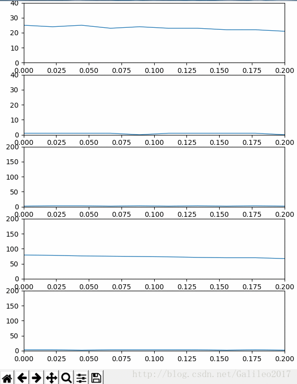 import numpy as np from matplotlib import pyplot as plt from matplotlib import animation path = "Nccut_TraceFile.log" file = open(path, 'r') AMat = []; BMat = [];XMat = [];YMat = [];ZMat = []; for line in file.readlines(): lineArr = line.strip().split() AMat.append(int(lineArr[0])) BMat.append(int(lineArr[1])) XMat.append(int(lineArr[2])) YMat.append(int(lineArr[3])) ZMat.append(int(lineArr[4])) fig = plt.figure() axA = fig.add_subplot(5,1,1,xlim=(0, 0.2), ylim=(0, 40)) axB = fig.add_subplot(5,1,2,xlim=(0, 0.2), ylim=(0, 40)) axX = fig.add_subplot(5,1,3,xlim=(0, 0.2), ylim=(0, 200)) axY = fig.add_subplot(5,1,4,xlim=(0, 0.2), ylim=(0, 200)) axZ = fig.add_subplot(5,1,5,xlim=(0, 0.2), ylim=(0, 200)) lineA, = axA.plot([], [], lw=1) lineB, = axB.plot([], [], lw=1) lineX, = axX.plot([], [], lw=1) lineY, = axY.plot([], [], lw=1) lineZ, = axZ.plot([], [], lw=1) def init(): lineA.set_data([], []) lineB.set_data([], []) lineX.set_data([], []) lineY.set_data([], []) lineZ.set_data([], []) return lineA,lineB,lineX,lineY,lineZ def animate(i): t = np.linspace(0, 0.2, 10) yA = AMat[i:10 + i] lineA.set_data(t, yA) yB = BMat[i:10 + i] lineB.set_data(t, yB) yX = XMat[i:10 + i] lineX.set_data(t, yX) yY = YMat[i:10 + i] lineY.set_data(t, yY) yZ = ZMat[i:10 + i] lineZ.set_data(t, yZ) return lineA,lineB,lineX,lineY,lineZ anim1=animation.FuncAnimation(fig, animate, init_func=init, frames=len(XMat)-10, interval=2) plt.show()