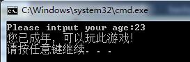 print("您已成年,可以玩此游戏!")