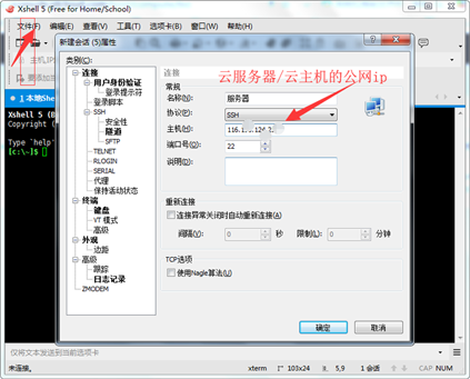 1.使用xshell链接云服务器/云主机系统(云服务器和云主机在这里概念差不多可以等同,后面都叫云服务器)1.打开xshell→【文件】→【新建】,输入你云服务器的公网ip