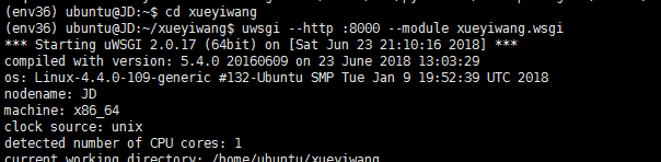 cd xueyiwang uwsgi --http :8000 --module xueyiwang.wsgi #通过uwsgi启动项目,这一步必须在项目目录下操作执行 #ctrl+C键关闭项目服务状态 #fuser -k 8000/tcp #关闭8000端口占用 #浏览器访问公网ip+8000 仍然可以正常访问,证明uwsgi安装成功