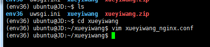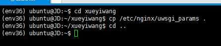 cd xueyiwang cp /etc/nginx/uwsgi_params . #在项目目录下执行,注意后面这个点儿别落下 #回到~目录下 cd ..
