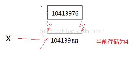 说明x指向了内存中存储为4的那个地址,那个地址是10413988