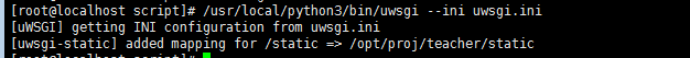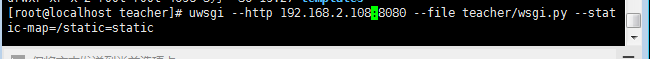 uwsgi --http 192.168.31.123:8080 --file teacher/wsgi.py --static-map=/static=static