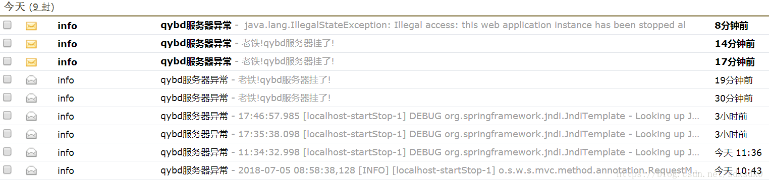 对于最近的开发环境,偶尔会有挂掉的现象发生,然而并没有及时发现,下载需要添加一个监控功能,当服务挂掉的时候需要有邮件提醒,同时我们的系统每天晚上会跑定时任务,想知道有没有异常发生,所以添加了两个python监本监控,因为本身系统不大,所以没必要去配置kafka+storm这种日志监控了,只用了很简单的方式来处理了。