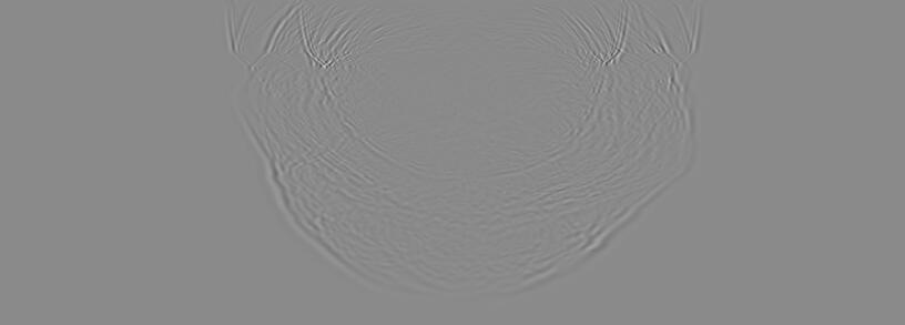 这里我们的目的是将矩阵输出灰度图,并保存为tiff格式的图像,效果图如下(该图为使用弹性波波动方程在Marmousi模型下的波场快照):