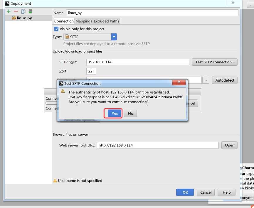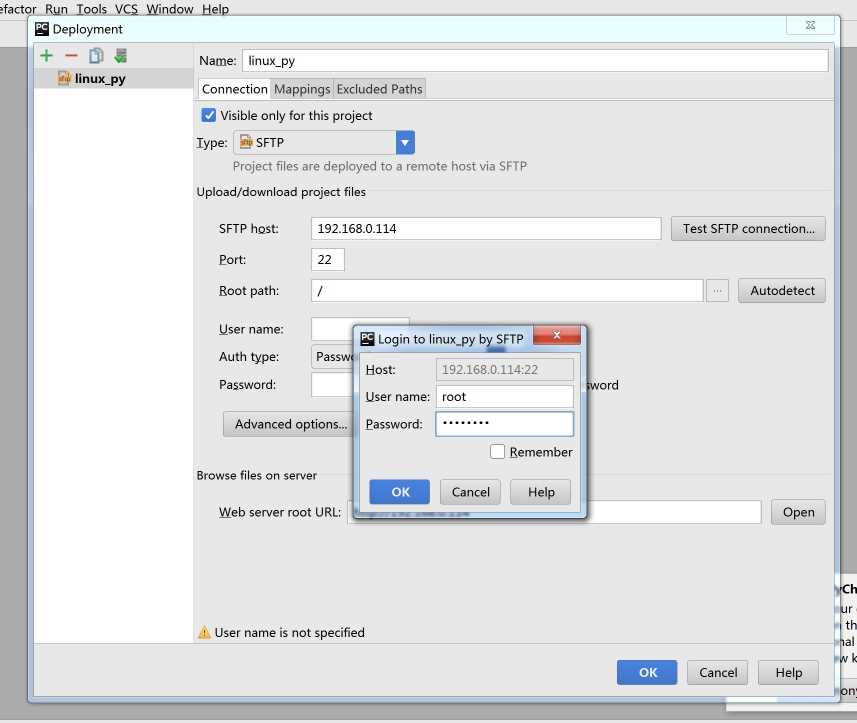 这里添加SFTP主机信息然后可以天机测试连接,输入用户名和密码