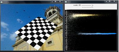 在直方图中,你可以看到H=100和S=200附近的一些高值,它对应于天空的蓝色.同样,在H=25和S=100附近也可以看到另一个峰值,它对应着宫殿的黄色.