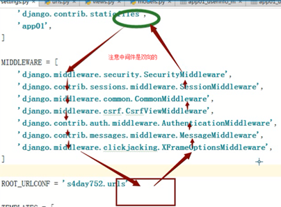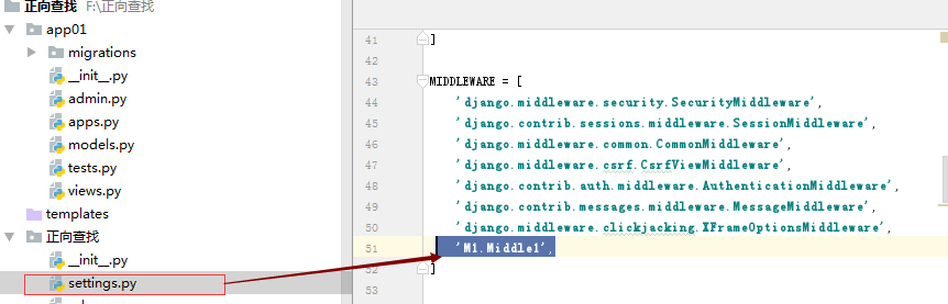 MIDDLEWARE = [ 'django.middleware.security.SecurityMiddleware', 'django.contrib.sessions.middleware.SessionMiddleware', 'django.middleware.common.CommonMiddleware', 'django.middleware.csrf.CsrfViewMiddleware', 'django.contrib.auth.middleware.AuthenticationMiddleware', 'django.contrib.messages.middleware.MessageMiddleware', 'django.middleware.clickjacking.XFrameOptionsMiddleware', 'M1.Middle1', ]