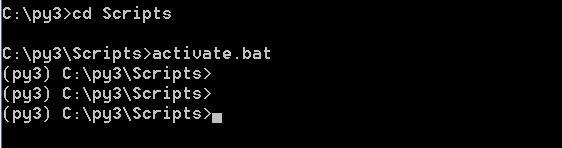 进入到Scripts,执行activate.bat,如下图表示激活成功